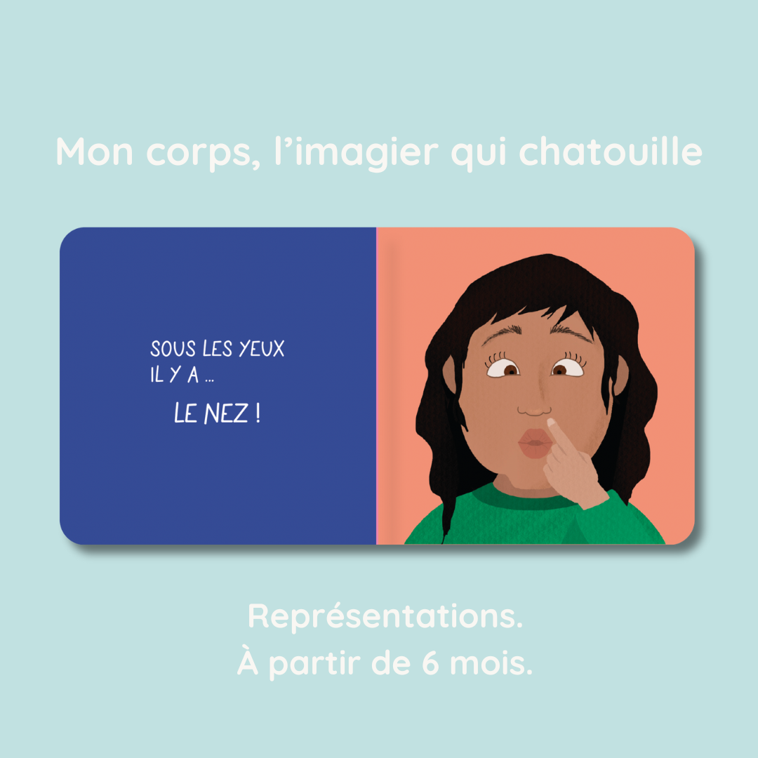 Plongez-vous avec les enfants, dans les dessins colorés de cet imagier pour apprendre de façon ludique différentes parties de la tête et du visage, mais pas que… la dernière page risque fort de chatouiller les tout-petits !