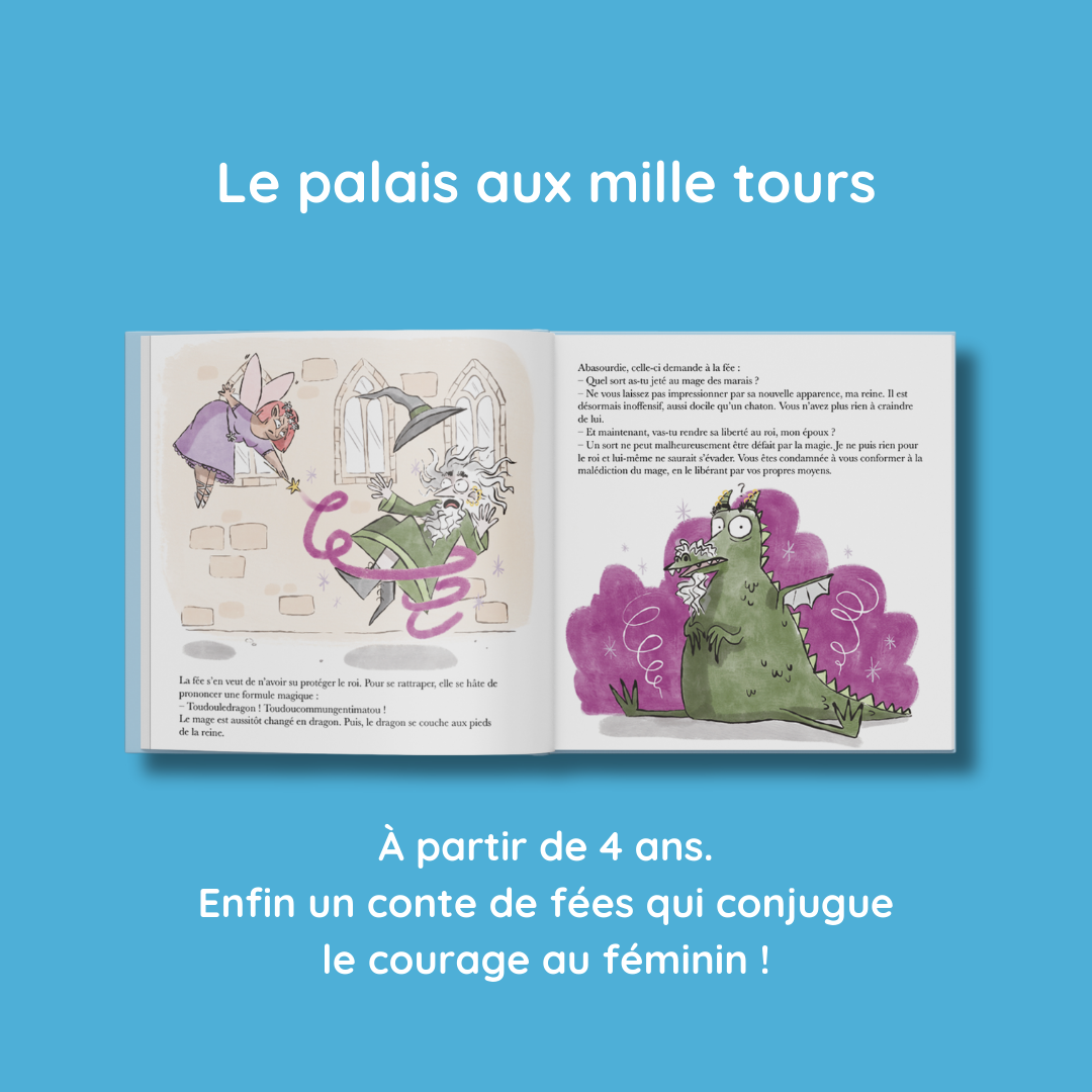 Pour se venger de ne pas avoir été invité au mariage de la reine et du roi, le méchant mage des marais leur offre un cadeau empoisonné : un palais comptant mille tours piégées et dont l’une sera… la prison du roi ! La reine, armée de sa bravoure et de son amour, devra affronter mille dangers pour sauver son adoré. Mais aura-t-elle assez d’une vie ?